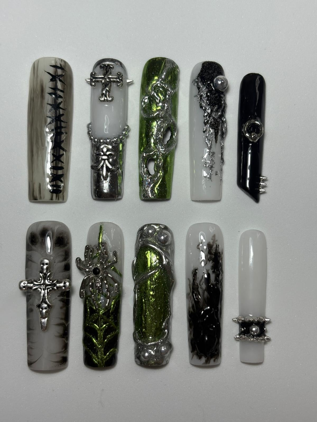 Some designs can take over 6 hours to complete, reflecting our dedication to artistry and individuality. From clean minimal sets to intricate 3D creations, every nail is a small work of art made to elevate your look.